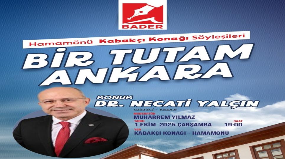 Başkent Düşünce ve Araştırma Derneği (BADER) tarafından düzenlenen Hamamönü Kabakçı Konağı Söyleşileri, Ankara’nın tarihini, kültürünü ve kimliğini yaşatmaya devam ediyor. Etkinlik serisinin bu haftaki konuğu, aynı zamanda Gazete Ankara Dijital Haber Portalı köşe yazarı olan Dr. Necati Yalçın olacak.