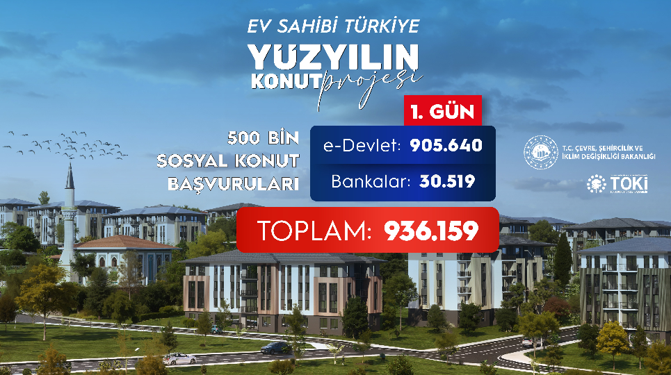 Çevre, Şehircilik ve İklim Değişikliği Bakanı Murat Kurum, 81 ilde inşa edilecek 500 bin sosyal konut projesine vatandaşların büyük ilgi gösterdiğini açıkladı. Bakan Kurum, projenin ilk gününde tam 936 bin 159 başvuru yapıldığını duyurdu.