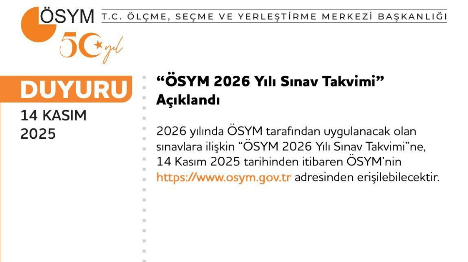 Ölçme, Seçme ve Yerleştirme Merkezi (ÖSYM) 2026 sınav takvimini duyurdu.