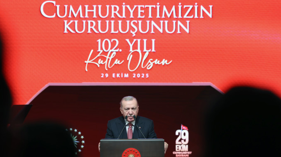 Cumhuriyet’in 102. yılı dolayısıyla Cumhurbaşkanlığı Külliyesi’nde düzenlenen özel programda konuşan Cumhurbaşkanı Recep Tayyip Erdoğan, “Sadece ülkemize değil, medeniyet coğrafyamızın tamamına huzur ve istikrar getirecek Türkiye Yüzyılı’nın kilometre taşlarını döşemeye devam ediyoruz” dedi.