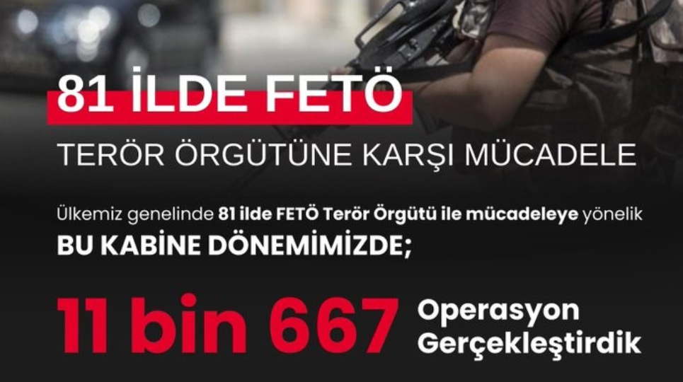 Ankara – İçişleri Bakanı Ali Yerlikaya, FETÖ’ye karşı yürütülen operasyonlara ilişkin son verileri paylaştı. Yerlikaya, “Bu kabine dönemimizde FETÖ’ye yönelik 11 bin 667 operasyon gerçekleştirdik. Bu operasyonlarda toplam 19 bin 25 şüpheli yakalandı ve haklarında gerekli işlemler yapıldı” dedi.