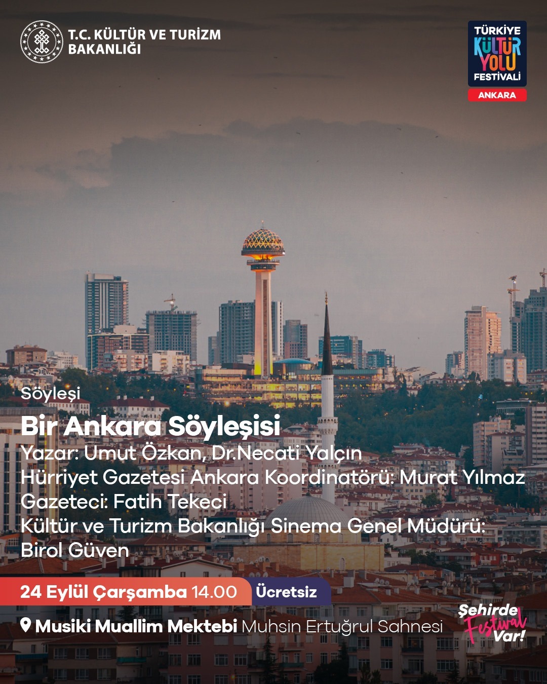 “Türkiye Kültür Yolu Festivali’nin özel programı Bir Ankara Söyleşisi, Gazete Ankara köşe yazarı Dr. Necati Yalçın ile alanında öncü isimleri buluşturarak Başkent’in kültürel hafızasına ışık tutuyor.”