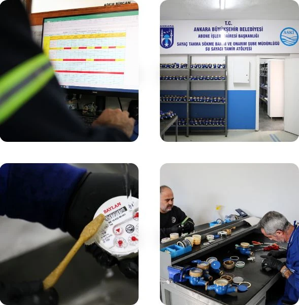 ASKİ Abone İşleri Daire Başkanlığı tarafından yürütülen süreçte sayaçlar önce arıza tespitine alınıyor; ardından tamir, bakım ve onarım işlemleri gerçekleştiriliyor. Yenilenen sayaçlar, doğrudan sahaya verilmeden önce ASKİ test merkezinde kontrol ediliyor.
