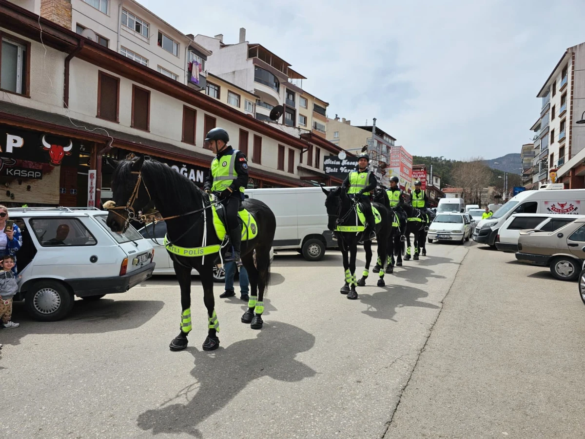Ankara İl Emniyet Müdürlüğü Çevik Kuvvet Şube Müdürlüğü bünyesinde görev yapan Atlı Polis Grup Amirliği ekipleri, devriye görevleri kapsamında Kızılcahamam’da vatandaşlarla buluştu. Görkemli görünümleriyle ilçeye renk katan atlı birlikler, hem huzuru tesis etti hem de ilgi odağı oldu.