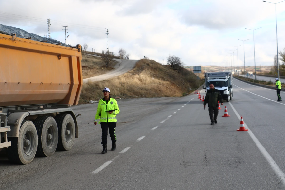 Ankara'nın Akyurt ilçesinde, olumsuz hava şartlarının etkisini artırmasıyla birlikte trafik polisleri tarafından zorunlu kış lastiği denetimi uygulaması başlatıldı. İlçe giriş ve çıkış noktalarında yoğunlaşan denetimlerde özellikle kamyonetler ve tırlar kontrol edildi.