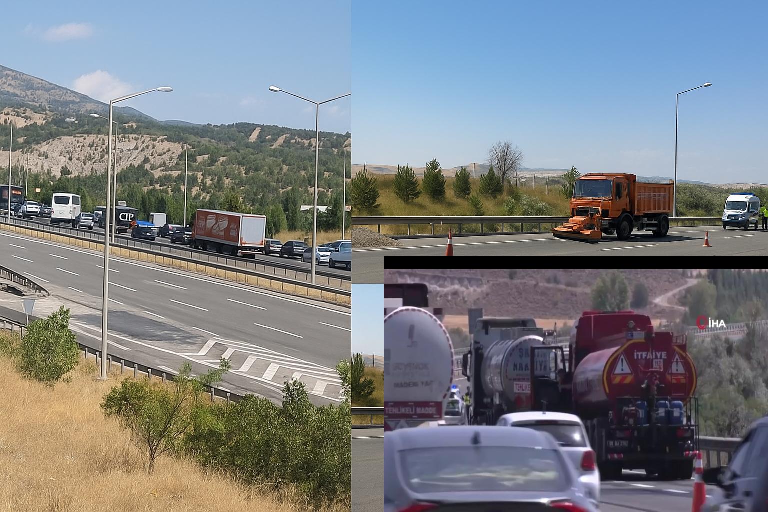 Ankara-Bolu Otoyolu’nda metanol yüklü tankerin karıştığı kaza sonrası yol bir süre trafiğe kapatıldı; tehlikeli maddeye karşı jandarma ve itfaiye ekipleri geniş güvenlik önlemleri aldı.