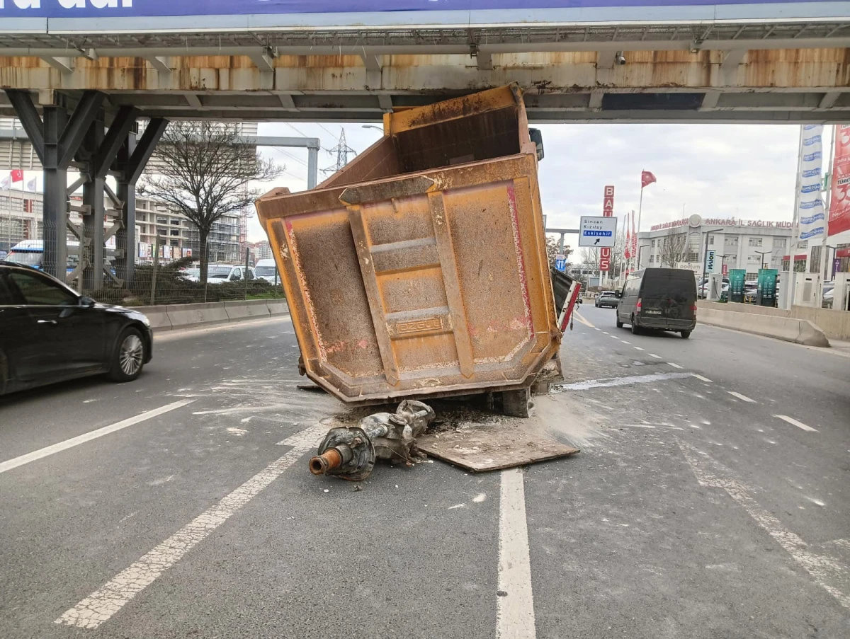 Ankara’da Sıra Dışı Kaza: Hafriyat Yüklü Tır Üst Geçide Sıkıştı