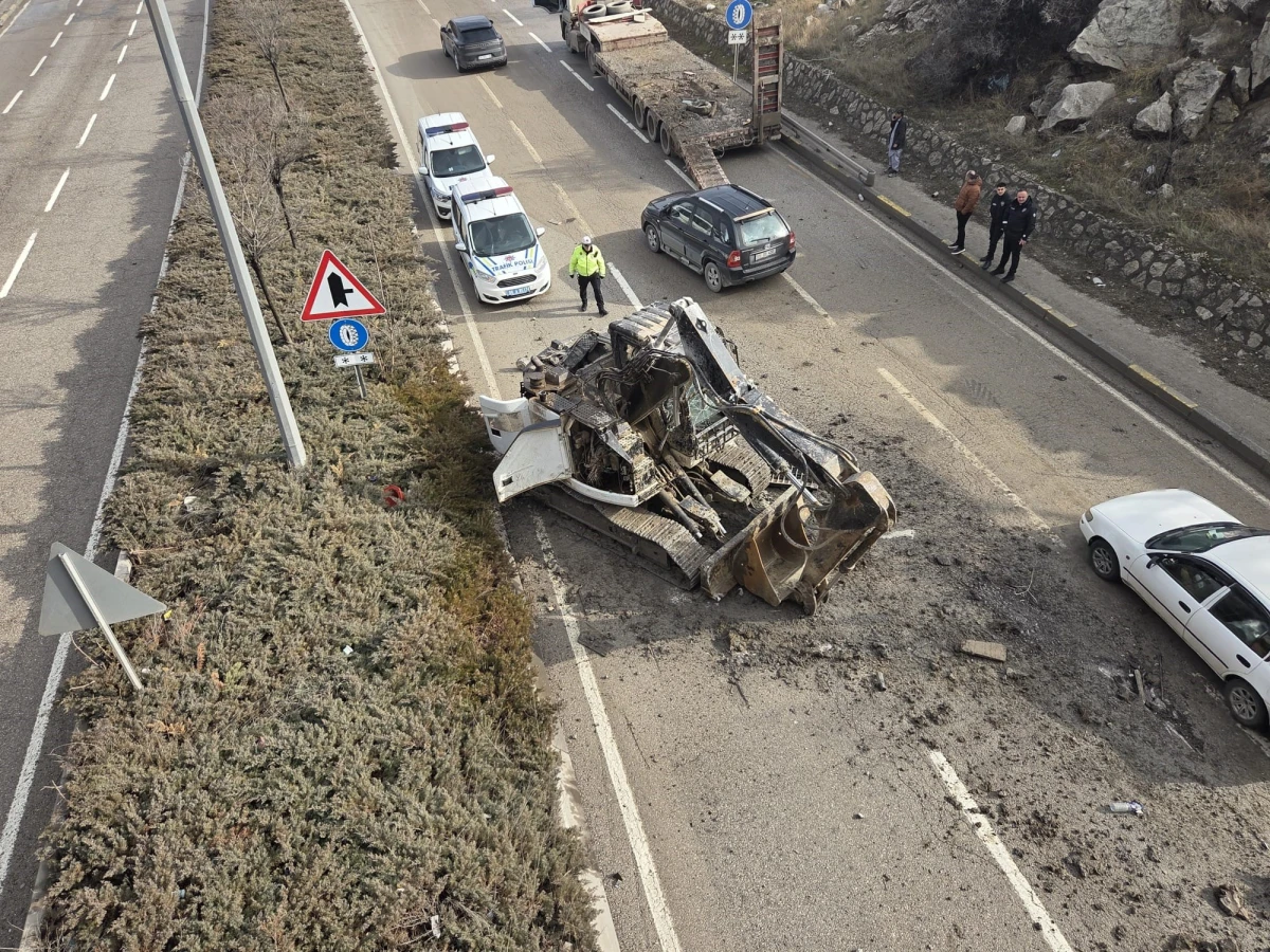 Can kaybı veya yaralanmanın yaşanmadığı kazada, yola düşen iş makinesi trafiği felç ederken, çevredeki sürücüler büyük panik yaşadı.