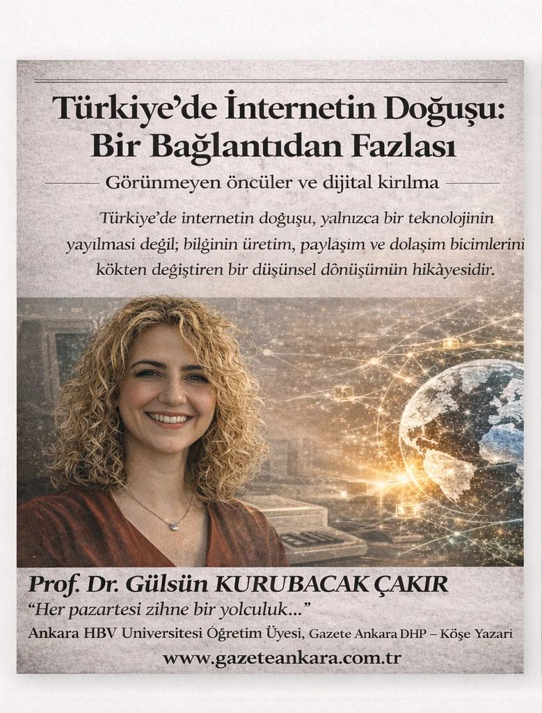 Gazete Ankara köşe yazarı Prof. Dr. Gülsün KURUBACAK ÇAKIR’ın analizine göre, Türkiye’de internetin gelişimi yalnızca teknik bir ilerleme değil, aynı zamanda düşünsel bir kırılma ve paradigma değişimidir.