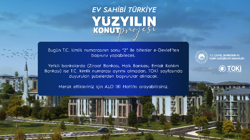 Başvurular yetkili bankaların TOKİ sayfasında duyurulan şubelerinden ve e-Devlet üzerinden alınmaya devam ediyor. Vatandaşlar, hangi bölgede hangi bankanın hizmet verdiğini TOKİ’nin resmi internet sitesinden öğrenebiliyor.