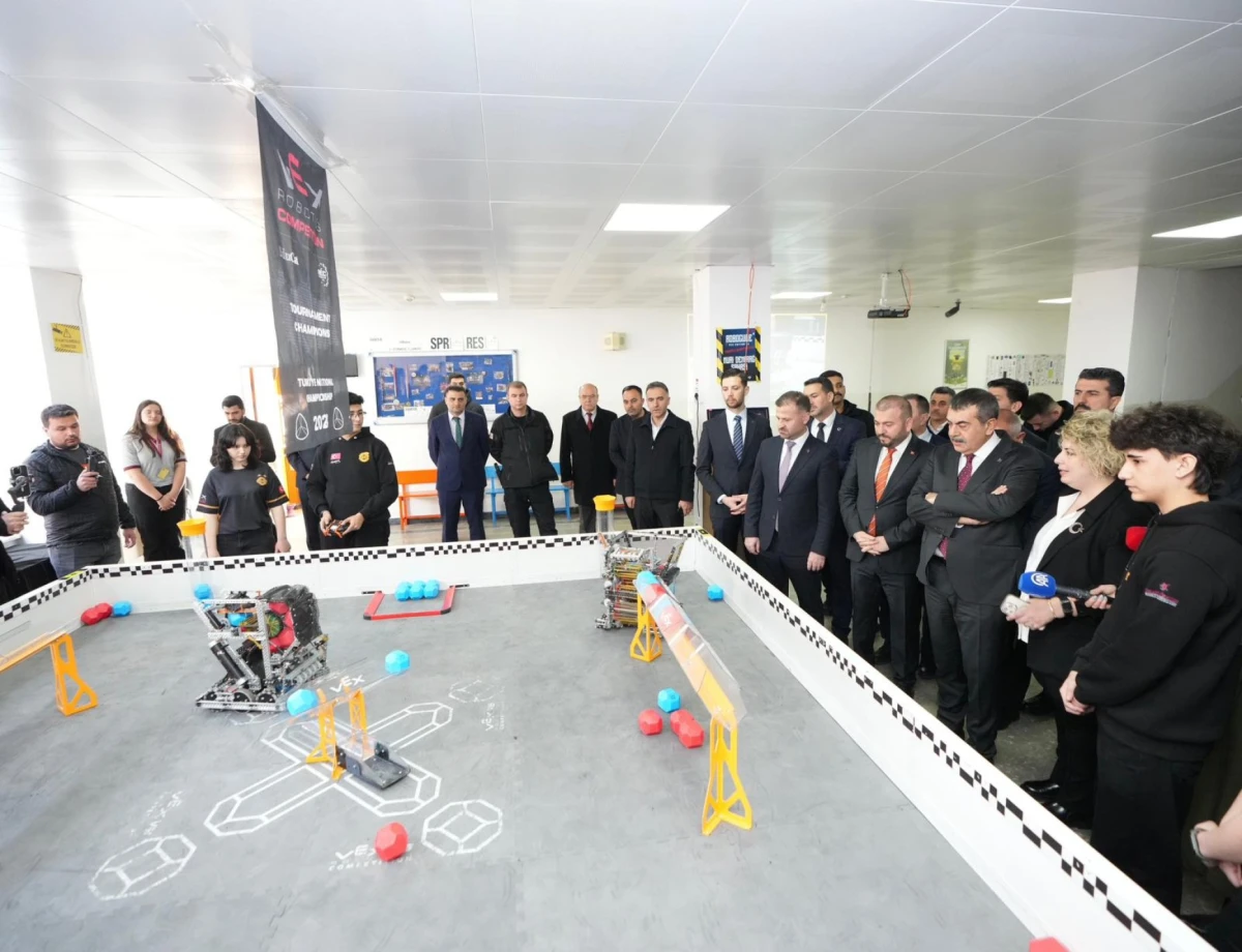 Bakan Tekin, okul girişindeki dron takımı çalışma sahasını ziyaret ederek öğrencilerle sohbet etti; okul müdürü Saadet Bektaş’tan çalışmalar hakkında bilgi aldı. Öğrenciler, tasarladıkları dron ile okul içinde kurulan sahada gösteri gerçekleştirdi.