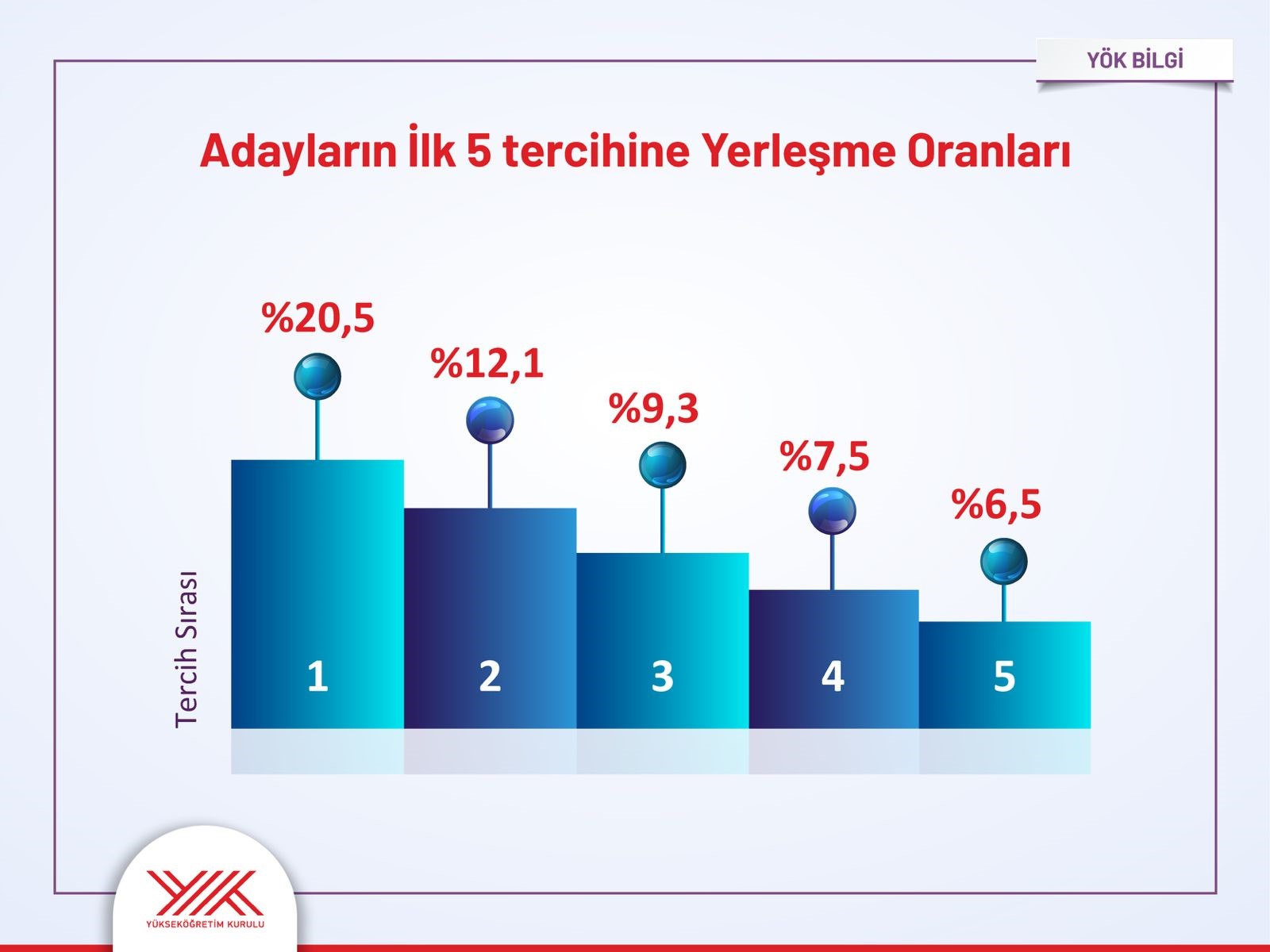 - Adayların %20,5’i ilk tercihine yerleşti.