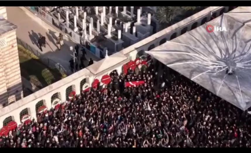 Cenaze törenine siyaset, akademi, kültür ve sanat dünyasından çok sayıda isim katılırken, cami avlusunda büyük bir kalabalık oluştu.