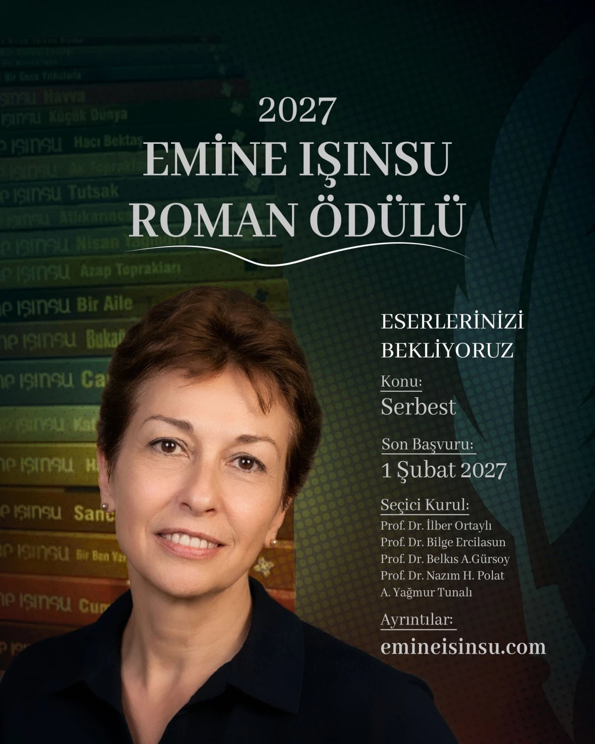 Yazar Emine Işınsu adına iki yılda bir düzenlenen Roman Ödülü’nün üçüncüsü için başvurular alınmaya başladı; son başvuru tarihi 1 Şubat 2027, kazanan eser ise 17 Mayıs 2027’de açıklanacak.