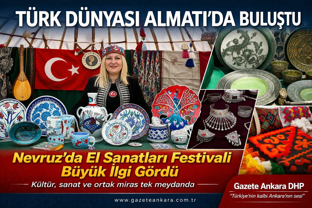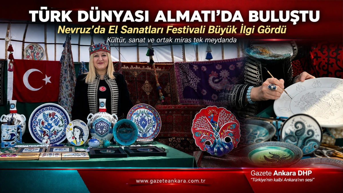 ANKARA– Gazete Ankara Dijital Haber Portalı Haber Merkezi / Kültür Sanat Haberleri- Kazakistan’ın Almatı şehrinde, Nevruz Bayramı kapsamında düzenlenen “Türk Dünyası El Sanatçıları Festivali”, Türk dünyasının farklı coğrafyalarından gelen sanatçı ve zanaatkârları bir araya getirdi. TRT AVAZ haberleri ve TÜRKSOY’un resmî duyurularına göre festival, 21–23 Mart 2026 tarihleri arasında Abay Meydanı ve Cumhuriyet Sarayı çevresinde yoğun katılımla gerçekleştirildi.