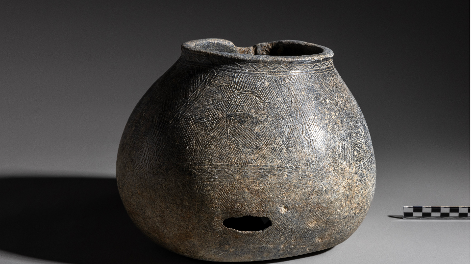 – Karahantepe’de bulunan Neolitik Çağ’a ait tabak,