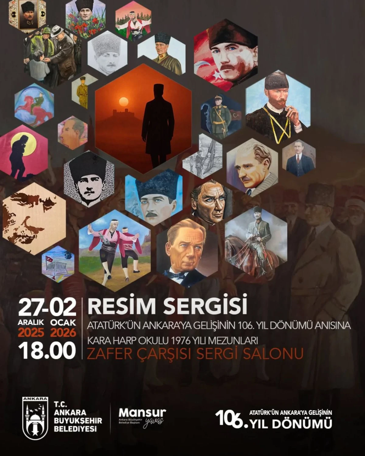 Ankara Büyükşehir Belediyesi’nin katkılarıyla, Kara Harp Okulu 1976 yılı mezunlarının düzenlediği “Resim Sergisi”, Atatürk’ün Ankara’ya gelişinin 106. yıl dönümü anısına 27 Aralık’ta Zafer Çarşısı Sergi Salonu’nda sanatseverlerle buluşacak