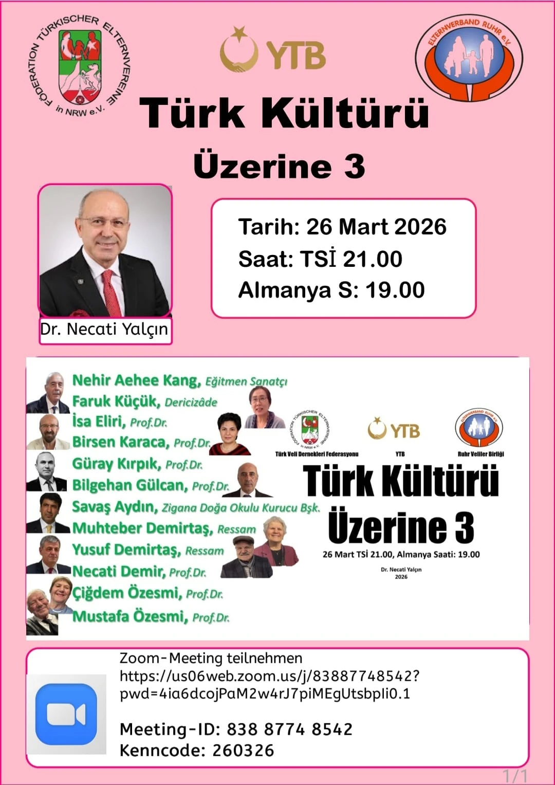 Ankara – Gazete Ankara Dijital Haber Portalı Haber Merkezi / Kültür Sanat- Yurt dışında yaşayan Türk toplumunun kültürel kimliğini koruma ve gelecek nesillere aktarma hedefi doğrultusunda düzenlenen “Türk Kültürü Üzerine” dijital etkinlik serisinin üçüncüsü, bugün (26 Mart 2026) saat 21.00’de (TSİ) çevrim içi olarak gerçekleştirilecek. Almanya saati ile 19.00’da başlayacak program, uluslararası katılımla geniş bir izleyici kitlesini buluşturacak.
