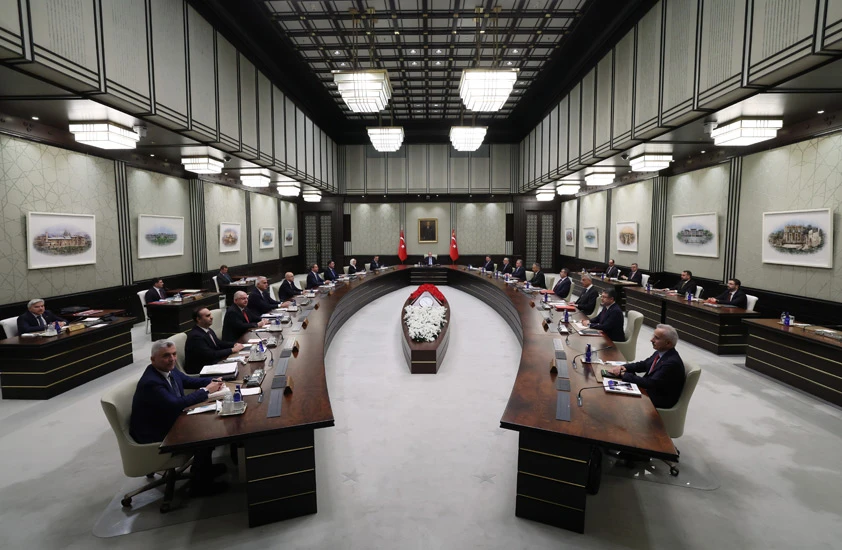 Cumhurbaşkanı Erdoğan başkanlığında Külliye’de toplanan Kabine’nin ardından yapılan açıklamada; güvenlik ve dış politika başlıklarının yanı sıra ihracat–enflasyon verileri, deprem konutları ve üniversite burs/kredi artışları öne çıktı. “Uluslararası hukuku ihlal eden hiçbir eylemi tasvip etmeyiz” vurgusu dikkat çekti.