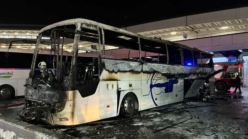 AŞTİ’de otobüs yangını paniğe yol açtı! Korku dolu anlar kamerada