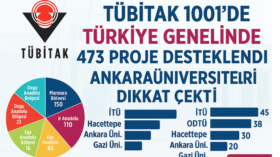 2025 yılı 1. dönem TÜBİTAK 1001 sonuçlarına göre Türkiye genelinde 473 proje desteklenirken, İstanbul Teknik Üniversitesi 45 proje ile birinci sırada yer aldı. Ankara’da ise Orta Doğu Teknik Üniversitesi 38, Hacettepe Üniversitesi 30, Ankara Üniversitesi 20 proje ile öne çıktı. Gazi Üniversitesi 9 farklı projesiyle disiplinler arası gücünü ortaya koydu.