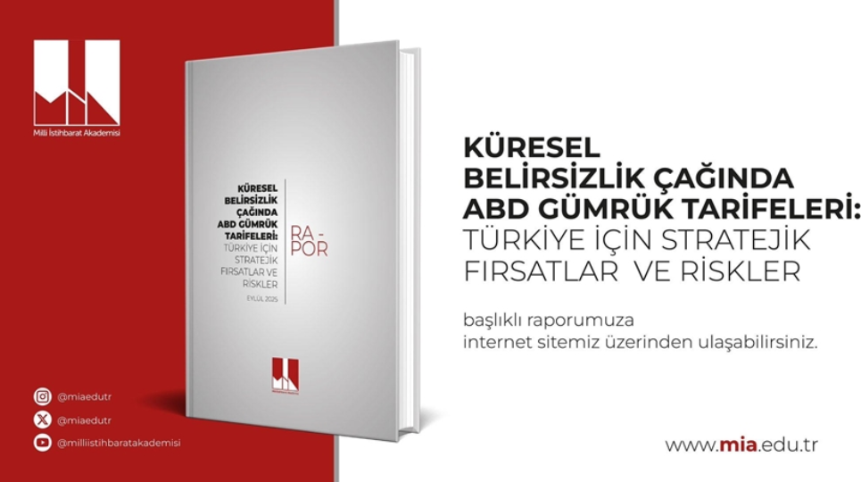 ANKARA – Gazete Ankara DHP Haber Merkezi - ABD Başkanı Donald Trump’ın ikinci döneminde uygulamaya koyduğu gümrük tarifeleri, dünya ticaretinde yeni bir döneme girildiğini gösteriyor. Millî İstihbarat Akademisi (MİA) tarafından hazırlanan ve “Küresel Belirsizlik Çağında ABD Gümrük Tarifeleri: Türkiye İçin Stratejik Fırsatlar ve Riskler” başlığını taşıyan kapsamlı raporda, söz konusu politikaların küresel ekonomide yol açtığı dalgalanmalar ayrıntılı biçimde inceleniyor