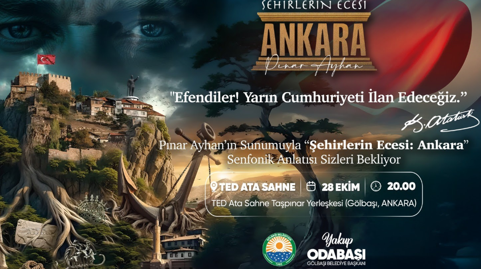 Ankara – Gölbaşı Belediyesi, 29 Ekim Cumhuriyet Bayramı kutlamaları kapsamında, Ankara’nın binlerce yıllık tarihini ve kültürel mirasını sahneye taşıyacak “Şehirlerin Ecesi: Ankara” adlı özel gösteriye ev sahipliği yapacak. Gölbaşı Belediye Başkanı Yakup Odabaşı, tüm vatandaşları bu destansı gösteriye davet etti.