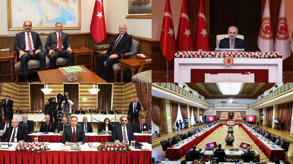 Toplantıya İçişleri Bakanı Ali Yerlikaya, Milli Savunma Bakanı Yaşar Güler ve Millî İstihbarat Teşkilatı (MİT) Başkanı İbrahim Kalın katılarak güvenlik, savunma ve istihbarat alanlarında kapsamlı sunumlar yaptı. Bakanlar ve MİT Başkanı, PKK’nın fesih ve silah bırakma sürecine ilişkin sahadaki son durumu aktardı, komisyon üyelerinin sorularını yanıtladı.