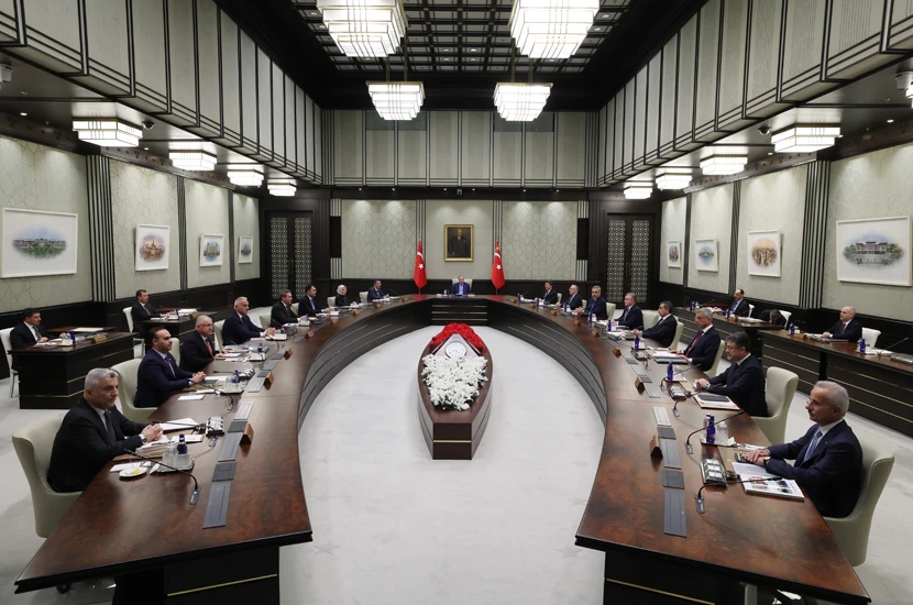 Cumhurbaşkanlığı Kabinesi, Cumhurbaşkanı Recep Tayyip Erdoğan’ın başkanlığında Cumhurbaşkanlığı Külliyesi’nde toplandı. Toplantı sonrası millete seslenen Erdoğan, “86 milyon birlik ve beraberlik içinde… her alanda büyük bir atılım hâlindeyiz” diyerek, küresel ölçekte “sancılı bir dönüşüm” yaşandığı bir dönemde Türkiye’nin hedeflerine “adım adım, kararlılıkla” ilerlediğini vurguladı.