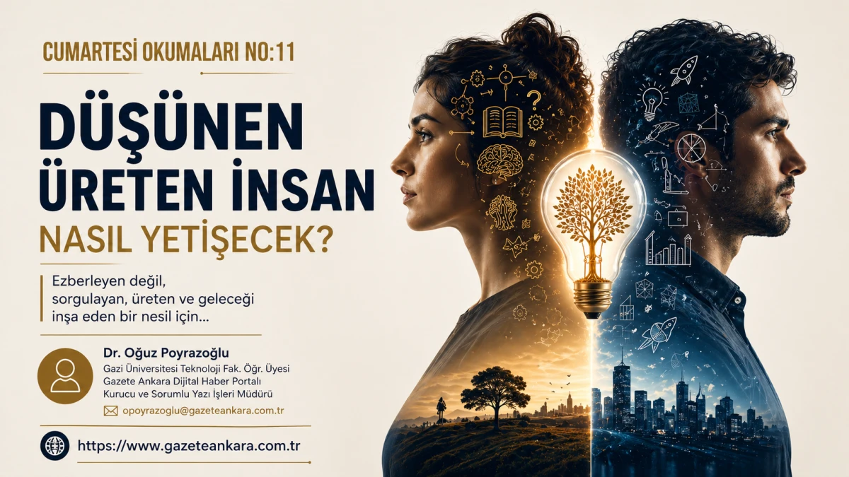 Çünkü “düşünen üreten insan” bir sloganla yetişmez. Müfredat cümleleriyle, tören konuşmalarıyla, temenni metinleriyle de yetişmez. Düşünen insan; soru soran, anlamaya çalışan, karşılaştıran, analiz eden, itiraz edebilen ve çözüm üretebilen insandır. Üreten insan ise yalnızca elindeki bilgiyi tekrar eden değil; o bilgiden yeni bir değer, yeni bir yöntem, yeni bir ürün, yeni bir fikir çıkarabilen insandır.