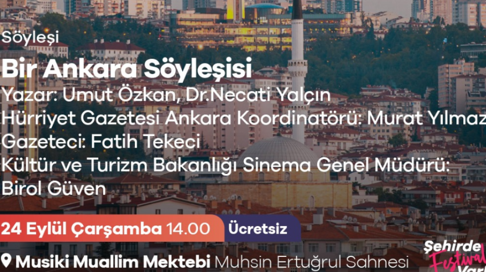 Türkiye Kültür Yolu Festivali’nin Ankara ayağı, şehrin tarihine, kültürüne ve sanatına yön veren önemli isimleri aynı sahnede buluşturuyor. Başkent’in ruhunu yansıtan etkinliklerden biri olan “Bir Ankara Söyleşisi”, 24 Eylül Çarşamba günü Musiki Muallim Mektebi Muhsin Ertuğrul Sahnesi’nde Ankara sevdalılarıyla buluşacak. Katılımın ücretsiz olduğu program, Ankara meraklıları için eşsiz bir fırsat sunuyor.