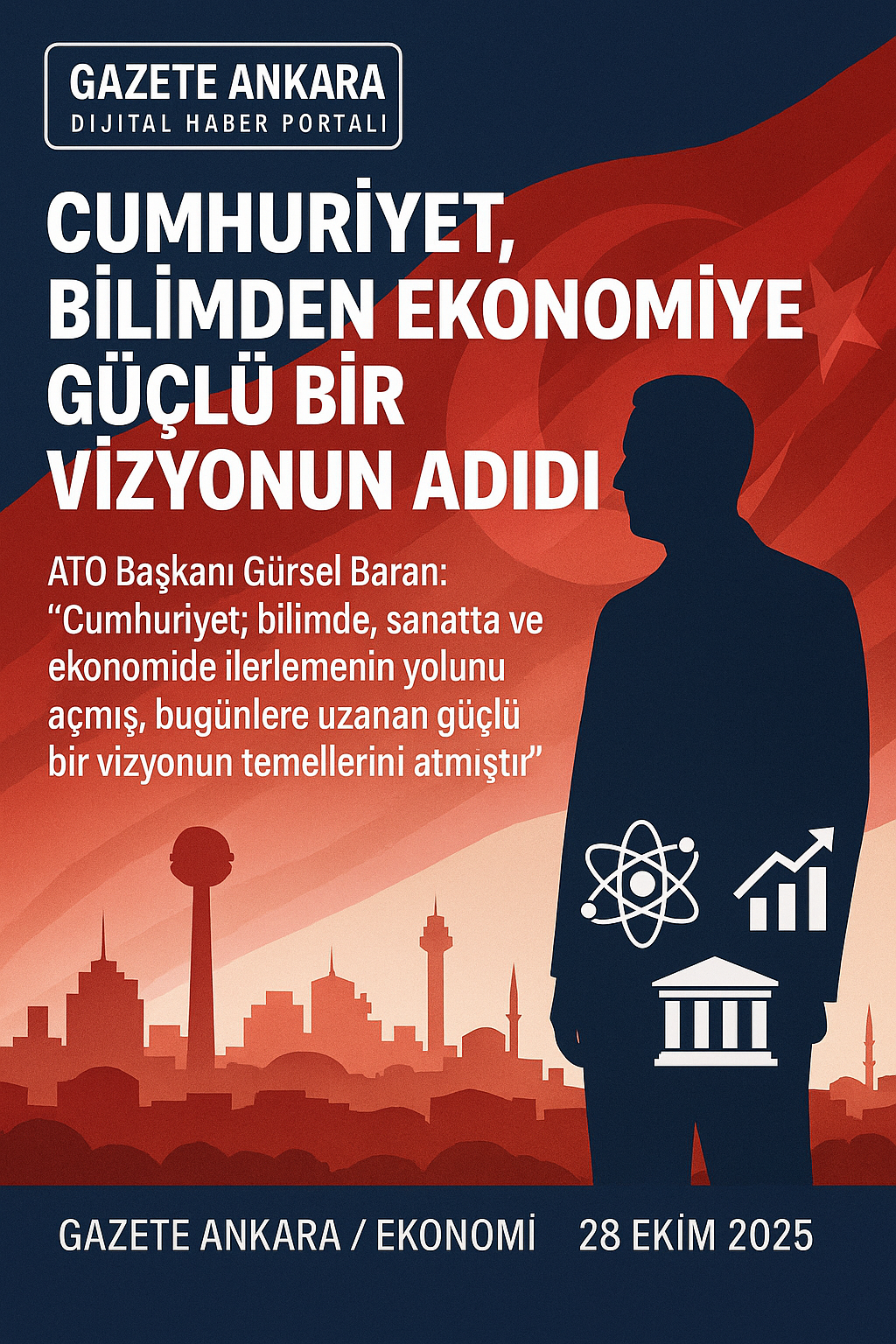 ANKARA – Ankara Ticaret Odası (ATO) Başkanı Gürsel Baran, Cumhuriyetin ilanının 102. yılı dolayısıyla yayımladığı mesajında, Cumhuriyet’in yalnızca bir yönetim biçimi değil; bilimde, sanatta ve ekonomide ilerlemenin yolunu açan güçlü bir vizyonun temeli olduğunu vurguladı.