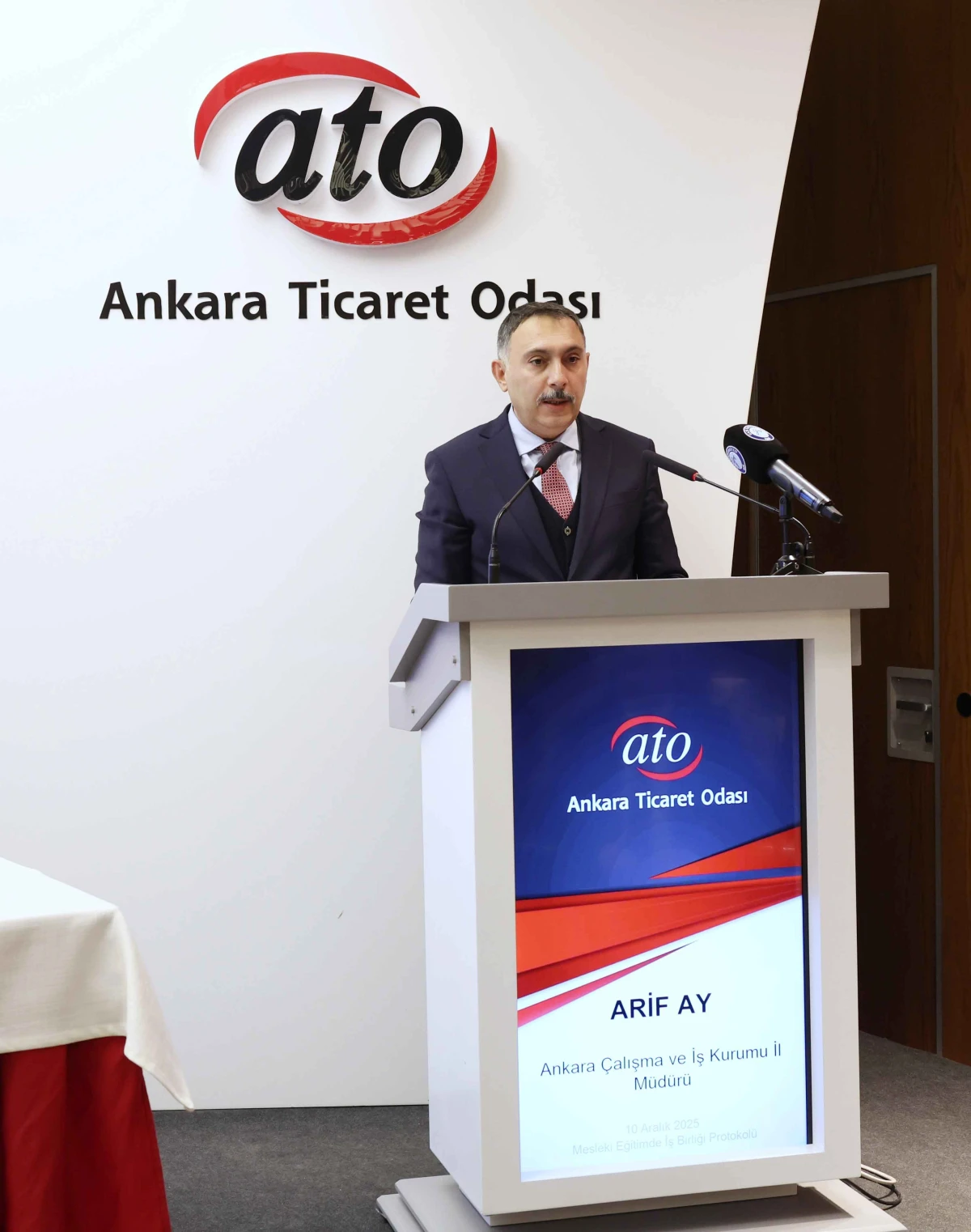 Ankara İŞKUR İl Müdürü Arif Ay, iş birliğiyle sektör ihtiyaçlarına uygun bireylerin yetiştirilmesi, iş dünyasının taleplerine daha hızlı yanıt verilmesi ve gençlerin istihdam edilebilirliğinin artırılmasının hedeflendiğini belirtti.