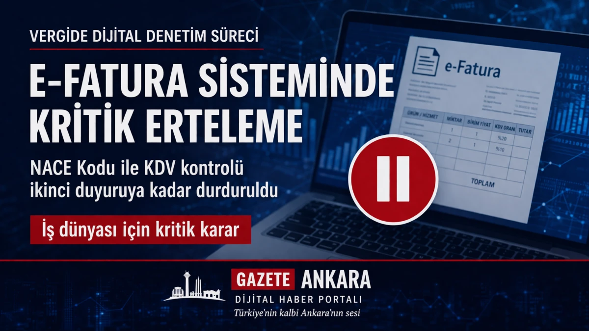 Gelir İdaresi Başkanlığı’nın elektronik belgelerde NACE kodu ile KDV oranı uyumunu otomatik kontrol edecek sistemi ikinci bir duyuruya kadar ertelendi; karar, ticari süreçlerde oluşabilecek riskleri minimize etmeyi hedefliyor.