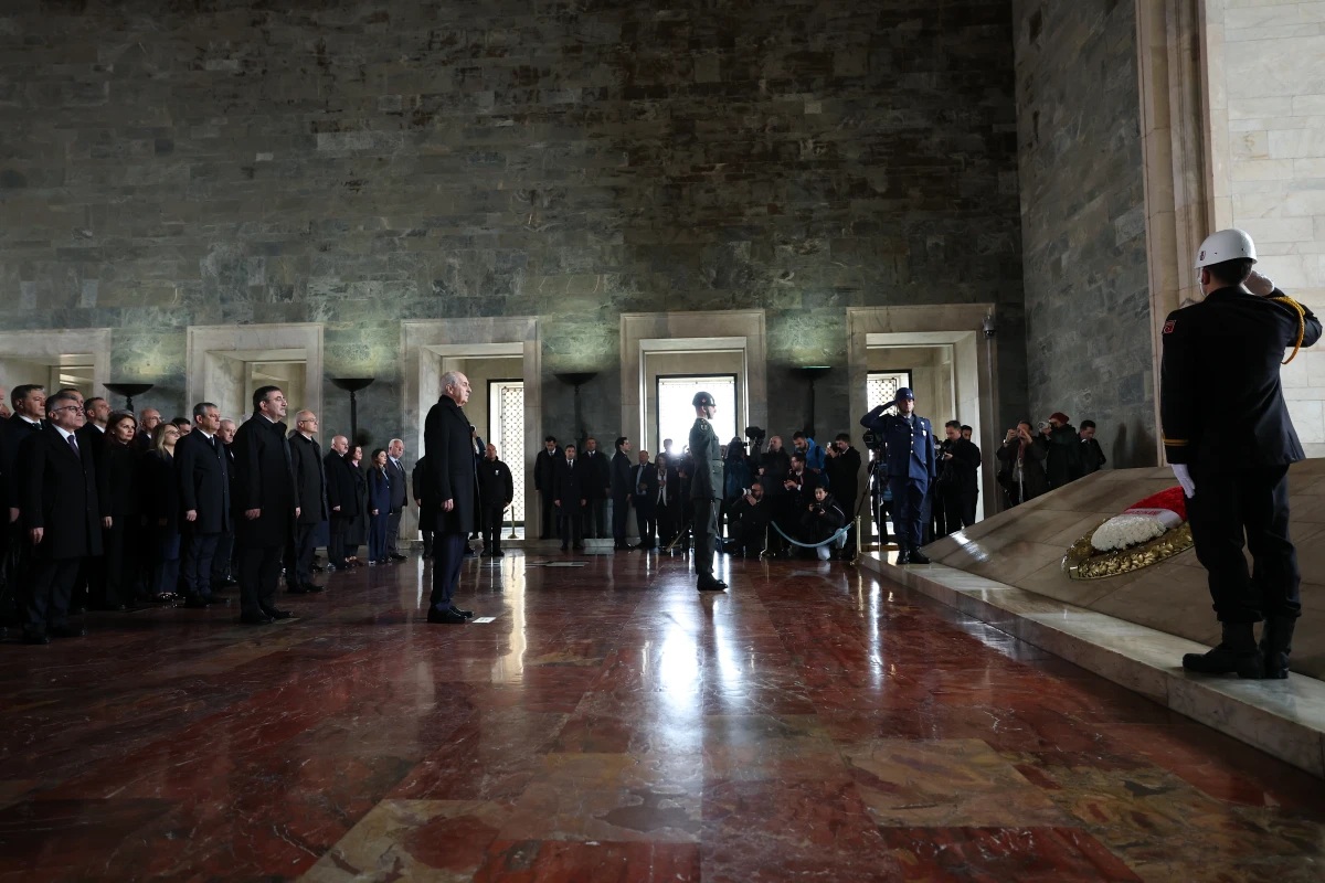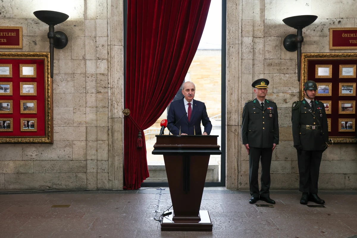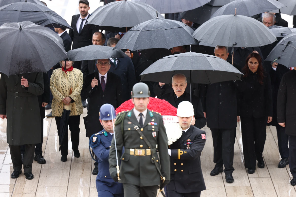 Heyet, Aslanlı Yol’dan yürüyerek Mustafa Kemal Atatürk’ün mozolesine ulaştı. TBMM Başkanı Kurtulmuş’un mozoleye çelenk bırakmasının ardından saygı duruşunda bulunuldu ve İstiklal Marşı okundu. Törenin ardından Kurtulmuş ve beraberindeki heyet, mozole merdivenlerinde hatıra fotoğrafı çektirdi.
