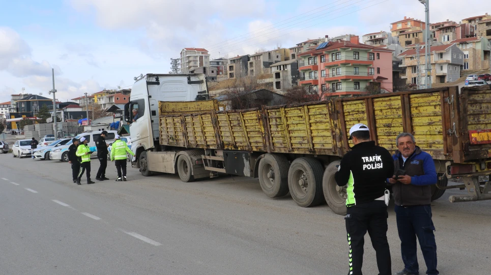 Ankara'nın Akyurt ilçesinde, olumsuz hava şartlarının etkisini artırmasıyla birlikte trafik polisleri tarafından zorunlu kış lastiği denetimi uygulaması başlatıldı. İlçe giriş ve çıkış noktalarında yoğunlaşan denetimlerde özellikle kamyonetler ve tırlar kontrol edildi.
