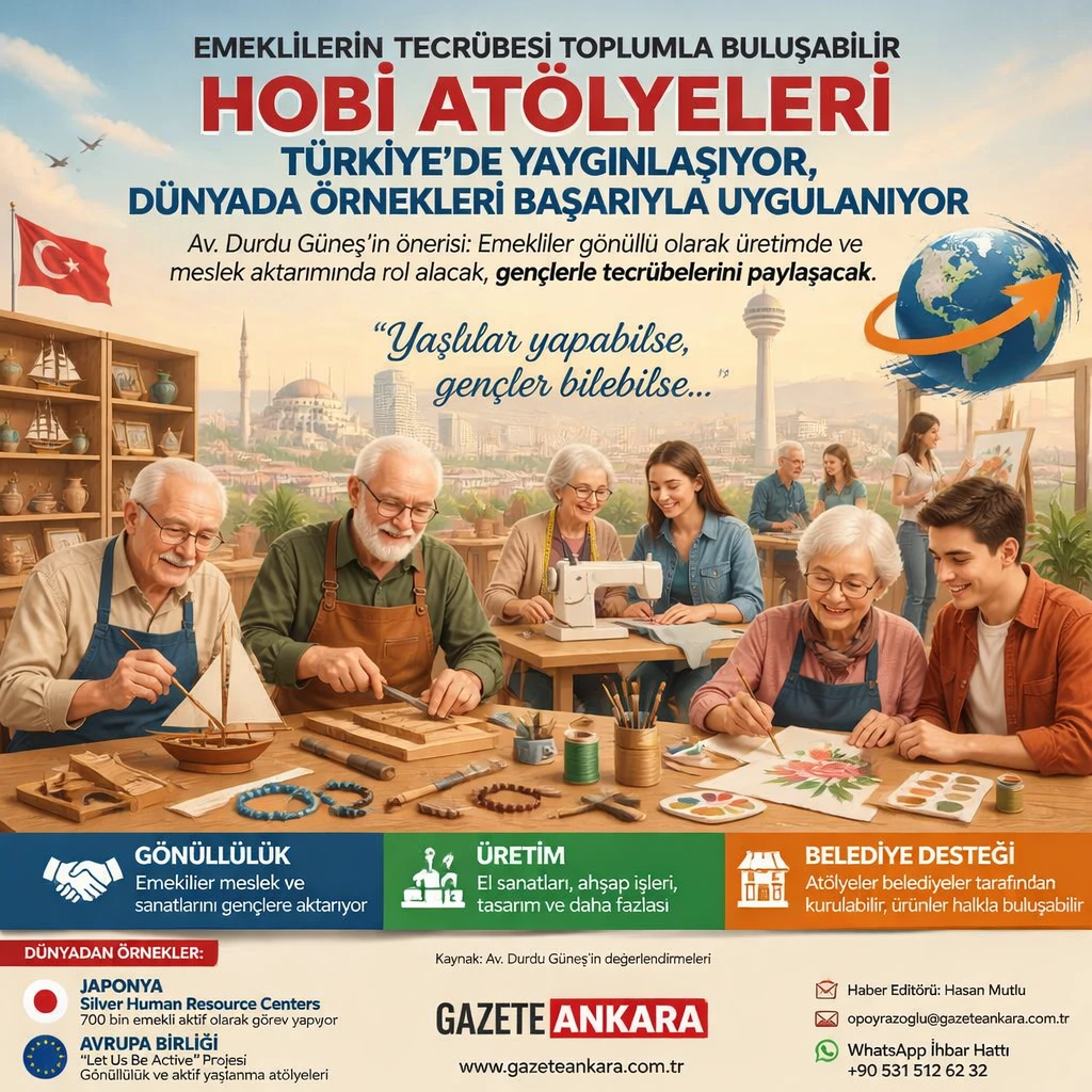 Gazete Ankara yazarı ve şair Av. Durdu Güneş’in gündeme getirdiği “Emekliler Hobi Atölyeleri” fikri, dünyadaki aktif yaşlanma ve gönüllü üretim modelleriyle benzerlik gösteren dikkat çekici bir sosyal proje önerisi olarak öne çıkıyor.
