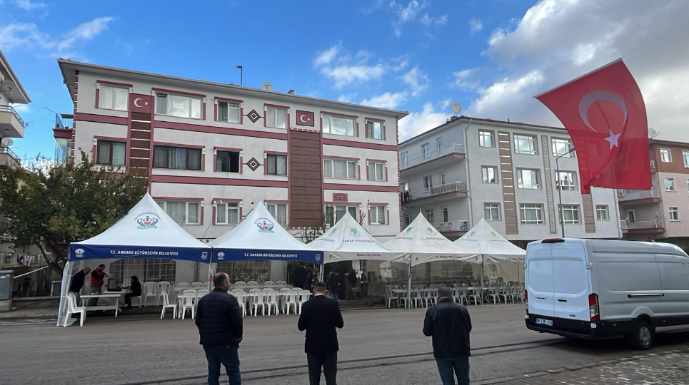 Azerbaycan’dan dönerken düşen askeri kargo uçağında şehit olan Uzman Çavuş Cem Dolapci’nın Ankara’daki babaevinin önüne taziye çadırı kuruldu.