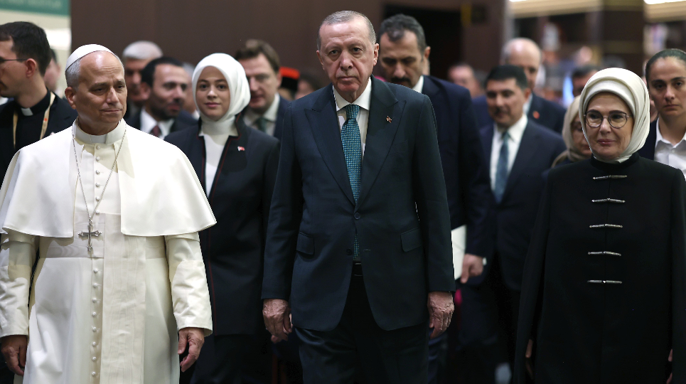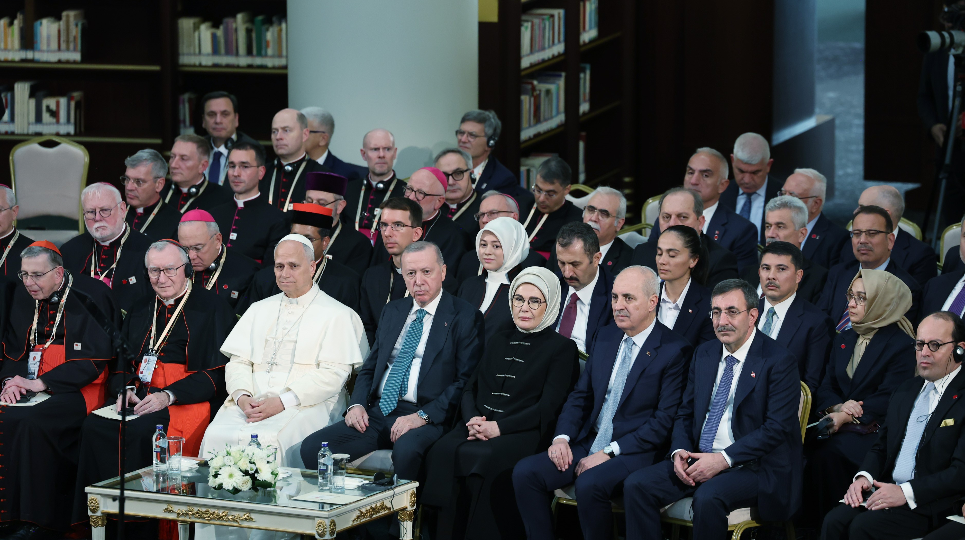 Papa 14. Leo’nun ziyaretinin bölgesel ve küresel olaylar bağlamında son derece kritik bir zamana tekabül ettiğini ifade eden Cumhurbaşkanı Erdoğan, ikili görüşmelerde küresel barışın ve istikrarın tesisi konusundaki gözlemlerini ve ortak beklentilerini paylaştıklarını bildirdi.
