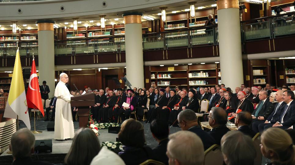 Konuşmasına Papa 14. Leo'yu ve heyetini Türkiye’de misafir etmekten memnuniyet duyduğunu belirterek başlayan Cumhurbaşkanı Erdoğan, Vatikan Devlet Başkanı Papa 14. Leo’nun göreve başladıktan sonraki ilk yurt dışı seyahatini Türkiye'ye gerçekleştirmesini her bakımdan çok anlamlı bulduğunu kaydetti. Bu ziyaretin Türkiye ile Vatikan arasındaki köklü ilişkilerin dostluk, iş birliği ve karşılıklı anlayış temelinde güçlenmesine katkı sağlaması temennisinde bulundu.