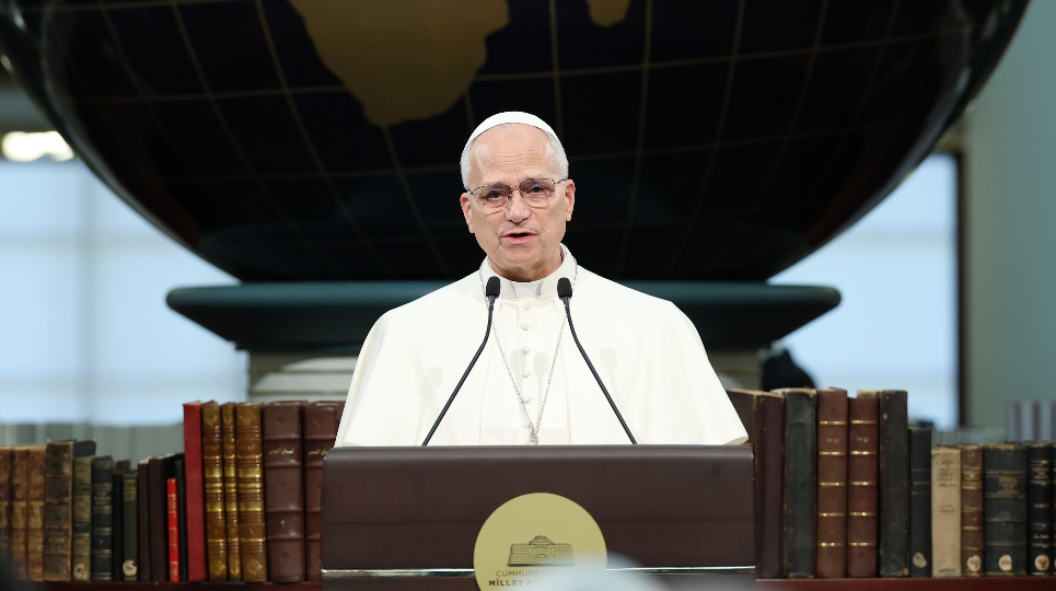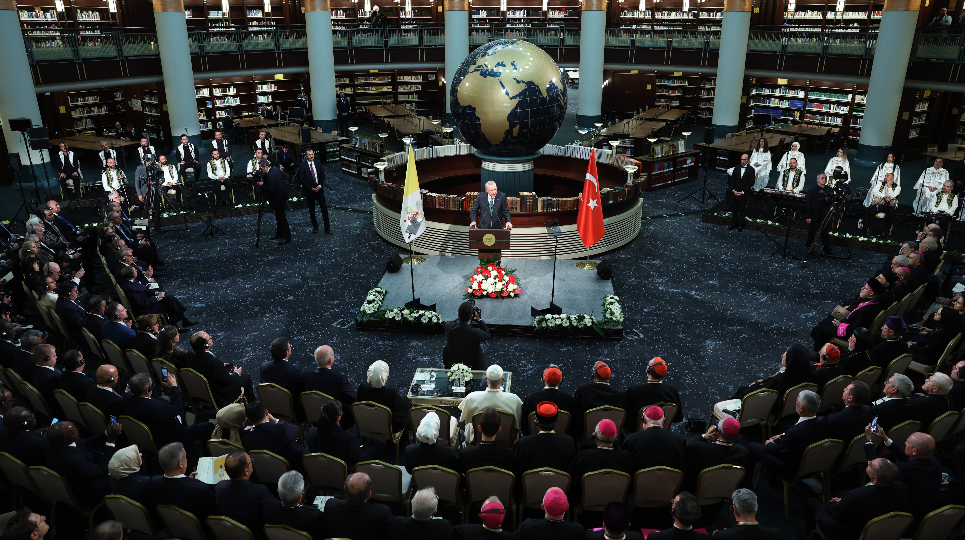 Cumhurbaşkanı Recep Tayyip Erdoğan, Vatikan Devlet Başkanı Papa 14. Leo ile görüşmesinin ardından, Cumhurbaşkanlığı Millet Kütüphanesi Cihannüma Salonu’nda davetlilere hitap etti. Erdoğan, "İnsanlık ailesi olarak Filistin halkına en büyük borcumuz adalettir, bu borcu ödemenin yolu ise 1967 sınırları temelinde iki devletli çözüm vizyonunu bir an önce hayata geçirmektir" dedi.