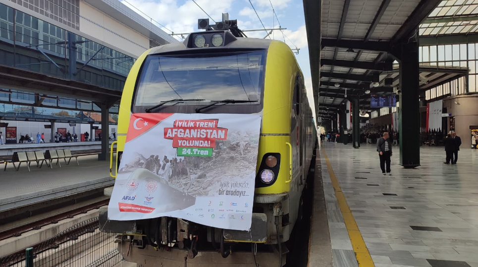 Afet ve Acil Durum Yönetimi Başkanlığı (AFAD) ve TCDD işbirliğiyle, Afganistan’da yaşanan deprem, sel ve insani krize yardım amacıyla hazırlanan 24. İyilik Treni, Ankara Garı'ndan hareket etti. Tren, toplam bin 300 ton temel yaşam malzemesi taşıyor.