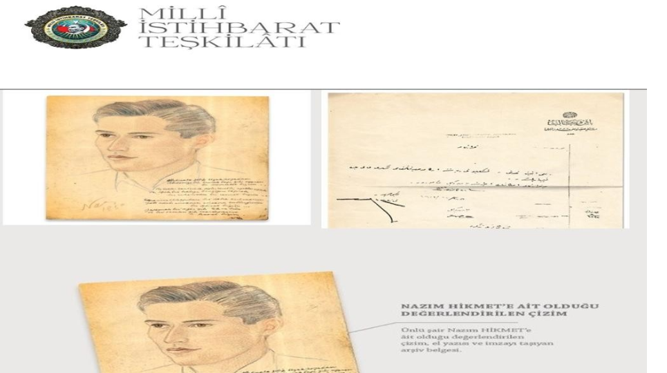 MİT, ünlü şair Nazım Hikmet’e ait olduğu değerlendirilen imza, el yazısı ve 'Davet' şiirinden dizeler içeren 1950 tarihli arşiv belgesinin gizliliğini kaldırarak kamuoyuyla paylaştı.